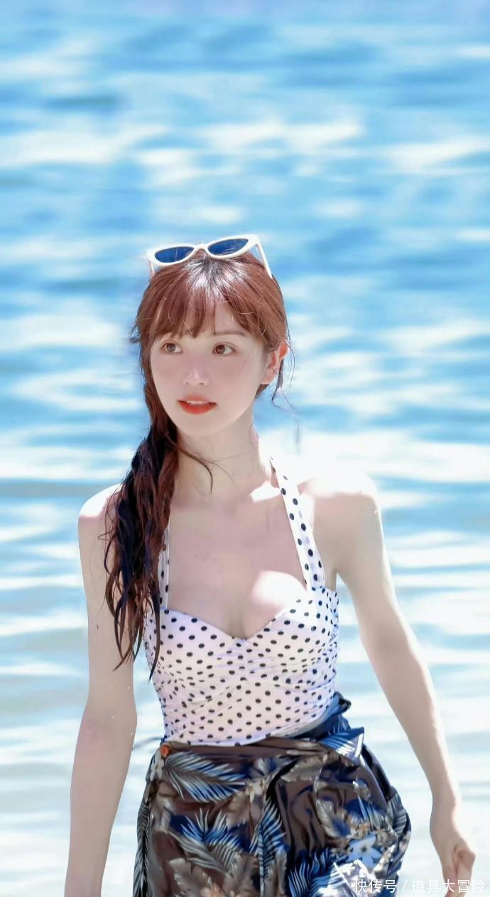 镜头里,田曦薇一身复古波点泳装,外搭印花纱裙,头顶超大草帽,脚踩细软白沙,像从日漫里走出的夏日女主。她时而迎着海浪回眸一笑,时而低头拨弄被海风吹乱的长发,每一个动作都自带“少女滤镜”。阳光落在她身上,连飞溅的水珠都闪着糖霜般的甜光,难怪网友齐刷:“田曦薇把海边度假风玩明白了,这套穿搭我立刻抄作业!”